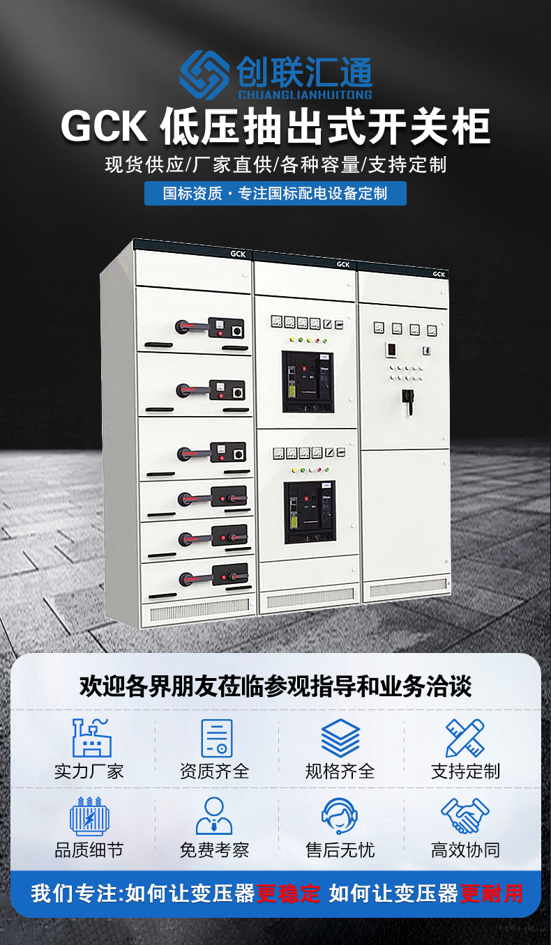 G-GCK型低壓抽出式開關(guān)柜,適用于三相交流50-60HZ,額定工作電壓為380V,額定電流400及以下三相四線制及三相五線制電力系統(tǒng)廣泛應(yīng)用于發(fā)電廠、變電站、工礦企業(yè)、大樓賓館、機(jī)場(chǎng)、碼頭以及廣播電視等通信中心,輸配電、電能轉(zhuǎn)換及電能消耗的動(dòng)力配電中的PC和電動(dòng)機(jī)控制中心MCC。
