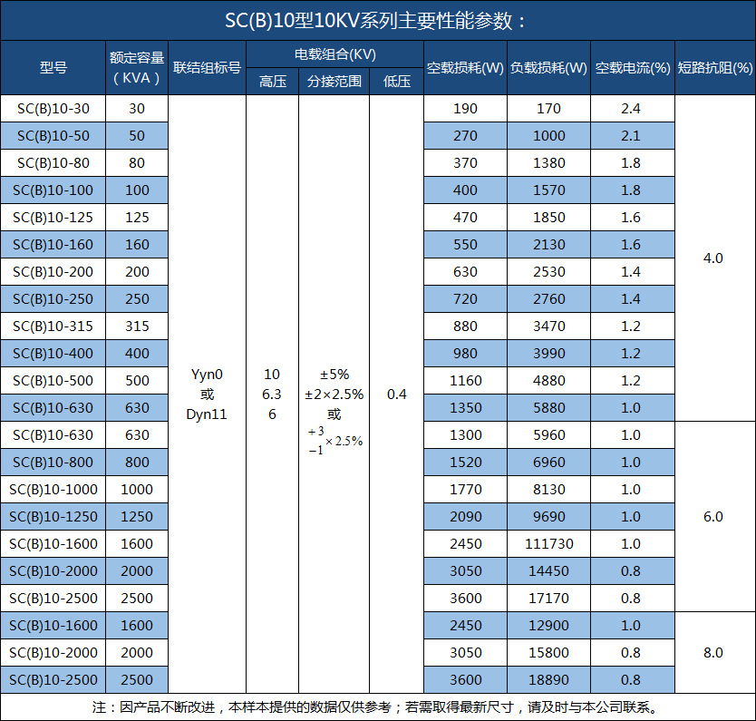 鐵芯:鐵芯選用進(jìn)口優(yōu)質(zhì)冷軋硅鋼片,三階全斜接縫結(jié)構(gòu),芯柱采用F級無緯帶綁扎,鐵芯表面采用環(huán)氧樹脂包封,降低了空載損耗,空載電流和鐵皮噪聲,夾件和緊回件經(jīng)特殊表面處理,使產(chǎn)品外觀質(zhì)量有了進(jìn)一步提高。