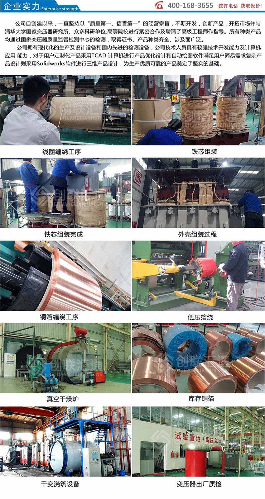 3.繞組采用優(yōu)質(zhì)無氧銅導線,導電性能好,負載損耗低。繞組設(shè)計為先進的縱向油道結(jié)構(gòu),散熱效果好,電氣絕緣強度高,有很好的沖擊特性。