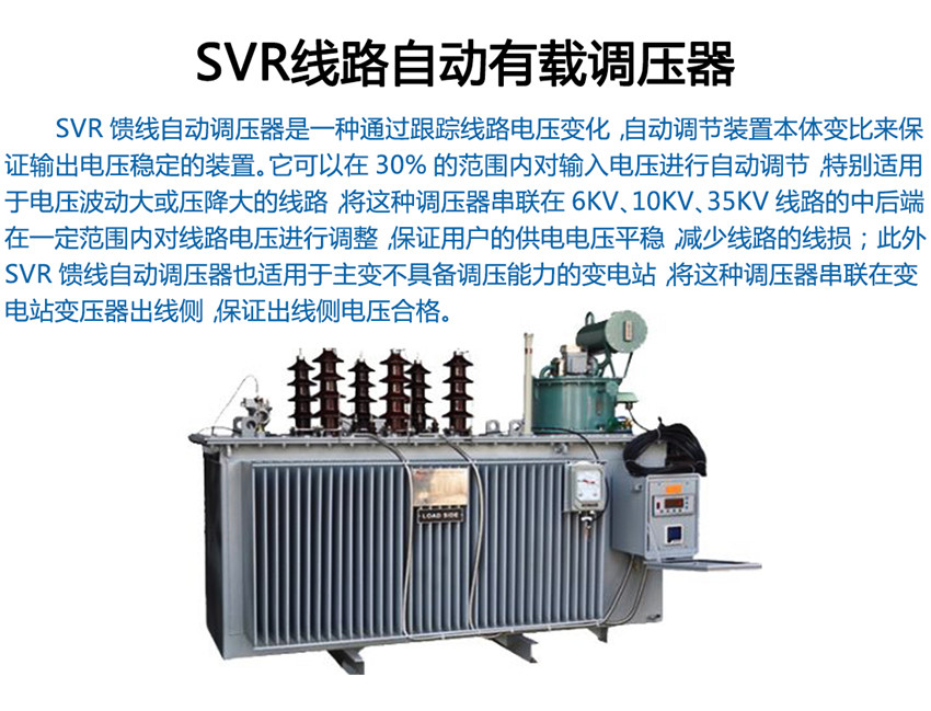 我公司生產(chǎn)的SVR型線路自動(dòng)調(diào)壓變壓器原理是SVR與10kV 柱上無功自動(dòng)補(bǔ)償裝置GWJ配合使用,可有效地解決線路電壓低及無功電源不足的問題。SVR 能有效地調(diào)節(jié)電路電壓, GWJ無功補(bǔ)償裝置能有效補(bǔ)償無功,提高功率因數(shù),降低線損,其效果相當(dāng)于一個(gè)簡易的柱上變電站,而造價(jià)僅為常規(guī)變電站的1/6~1/10。而成本只有變電站的1/6,1/7,而且無需工作人員值班維護(hù)。