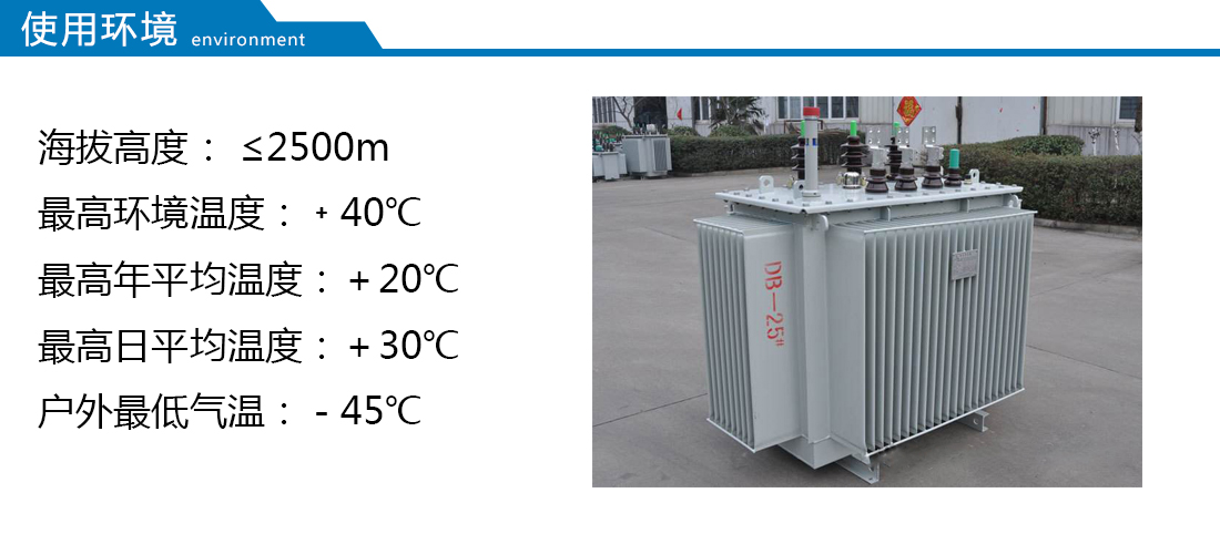 此類產品適用于交流50(60)Hz,三相最大額定容量2500kVA(單相最大額定容量833kVA,一般不推薦使用單相變壓器),可在戶內(外)使用,容量在315kVA 及以下時可安裝在桿上,環(huán)境溫度不高于40℃,不低于-25℃,最高日平均溫度30℃,最高年平均溫度20℃,相對濕度不超過90%(環(huán)境溫度25℃),海拔高度不超過1000m。