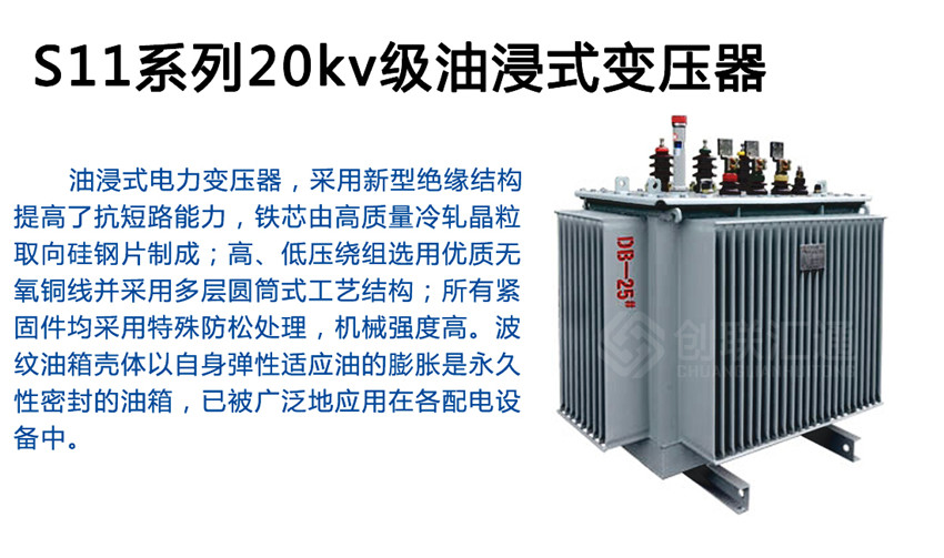 S11系列20kv級油浸式變壓器為配電網(wǎng)絡(luò)與工礦企業(yè)供配電系統(tǒng)中的重要設(shè)備,在工礦企業(yè)、農(nóng)業(yè)和民用建筑中廣泛使用,也可用于石油、化工行業(yè)中多油污、多化學(xué)物質(zhì)的場所。使用環(huán)境:戶外/戶內(nèi)使用,海拔不超過1000m。
